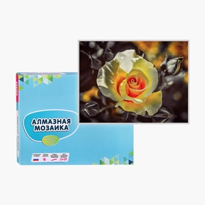 Состав набора: ламинированный жесткий картон с полноцветной печатью и частичным клеевым слоем. Схема рисунка расположена под клеевой частью. Пластиковый контейнер для элементов мозаики, специальный карандаш для захвата элементов, клей-липучка для карандаша, комплект разноцветных мозаичных элементов диаметром 2,7 мм.