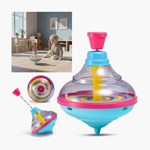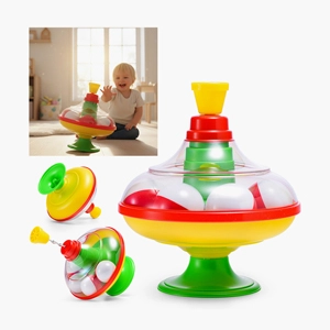 Ваш малыш с большим интересом будет рассматривать яркие детали игрушки, пробовать запускать юлу легким нажатием рычажка, наблюдать за ее волшебным вращением и слушать при этом весёлую мелодию.