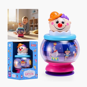 Ваш малыш с большим интересом будет рассматривать яркие детали игрушки, пробовать запускать юлу легким нажатием рычажка, наблюдать за ее волшебным вращением и слушать при этом приятную мелодию (фрагмент песни "Калинка").
