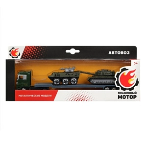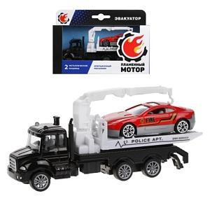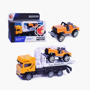 . Грузовик обладает металлической кабиной, а также у него есть подъёмный кран. Легковой автомобиль оснащен металлическим корпусом.