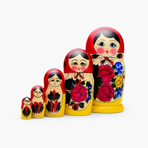 • В комплекте 5 кукол разного размера: 10.5 см.; 8.5 см.; 6 см.; 4 см.; 3 см.