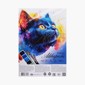 Бумага для акварели "Черный котенок" А4, 20 л., блок - белая акварельная бумага, 200 г/м²   Копировать Скопировано