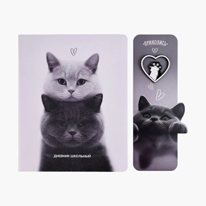 Дневник 1-11 кл. "Два кота" кожзам: А5+; твёрдый переплёт, со значком-пином   Копировать Скопировано
