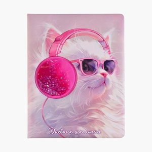 Дневник 1-11 кл. "Кот в наушниках" кожзам: А5+; твёрдый переплёт с поролоном   Копировать Скопировано