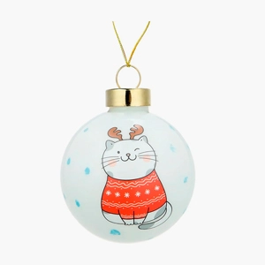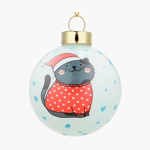 Новогоднее украшение. Елочный стеклянный шар "Котик в свитерке" 6см   Копировать Скопировано