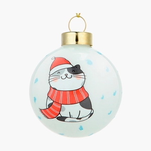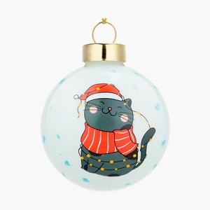 Новогоднее украшение. Елочный стеклянный шар "Котик в шарфике" 6см   Копировать Скопировано