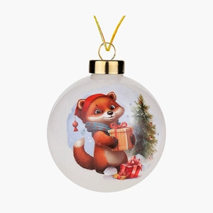 Новогоднее украшение. Елочный стеклянный шар "Новогодний лисенок" 8см   Копировать Скопировано