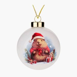 Новогоднее украшение. Елочный стеклянный шар "Новогодний сурок" 8см   Копировать Скопировано