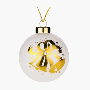 Новогоднее украшение. Елочный стеклянный шар "Золотистые колокольчики" 8см   Копировать Скопировано