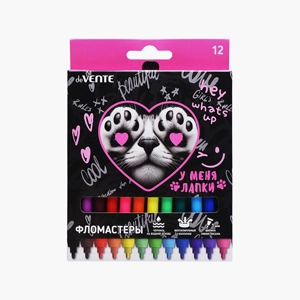 Фломастеры "У меня лапки" 12 цветов с вентилируемым колпачком, в картонной коробке с подвесом   Копировать Скопировано