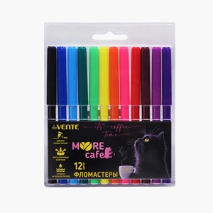 Фломастеры "MooreCafe" 12 цветов с вентилируемым колпачком, в пластиковом блистере   Копировать Скопировано