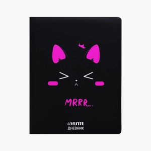 Дневник 1-11кл. "Mrrr…" универсальный блок, 48 листов, белая бумага 80 г/м², печать в 1 краску, твердая обложка из искусственной кожи с поролоном, шелкография, 1 ляссе, черный   Копировать Скопировано
