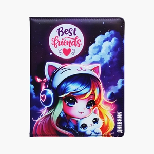 Дневник 1-11кл. "Best Friends" универсальный блок, 48 листов, белая бумага 80 г/м², печать в 1 краску, твердая обложка из искусственной кожи с поролоном, цветная печать, отстрочка, цветной форзац, 1 ляссе   Копировать Скопировано