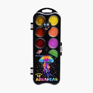 - Акварельные краски в наборах с богатой палитрой – от 12 до 24 цветов.