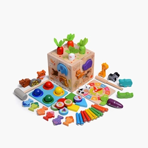 Набор деревянных игрушек "2 в 1" сочетает в себе две популярные методики Монтессори - логическую пирамидку, магнитную рыбалку