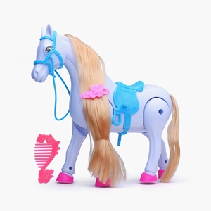 • лошадка перебирает ножками, изображая ходьбу, и двигает светящимися крылышками;