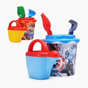 • В набор входит ведёрко, лопатка, грабли, лейка детская "Мини" 0,5л и 4 формы.