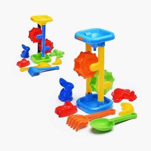 • При насыпании песка, внутри мельницы вращаются колёса.