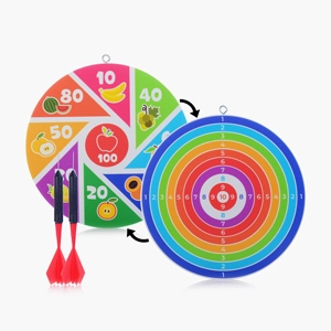 В набор Дартс MEGA TOYS входит мишень из прочного и упругого материала с двусторонней печатью и 2мя дротиками. Мишень сделана с удобной и надежной металлической петелькой для крепления.