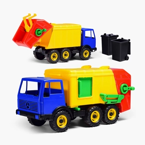 Игрушка выполнена из сертифицированного прочного пластика, устойчивого к различным физическим воздействиям, детали не бьются при падении, легко моются под водой и не выгорают на солнце, поэтому игрушечный мусоровоз идеален для игр в песочнице, на пляже.